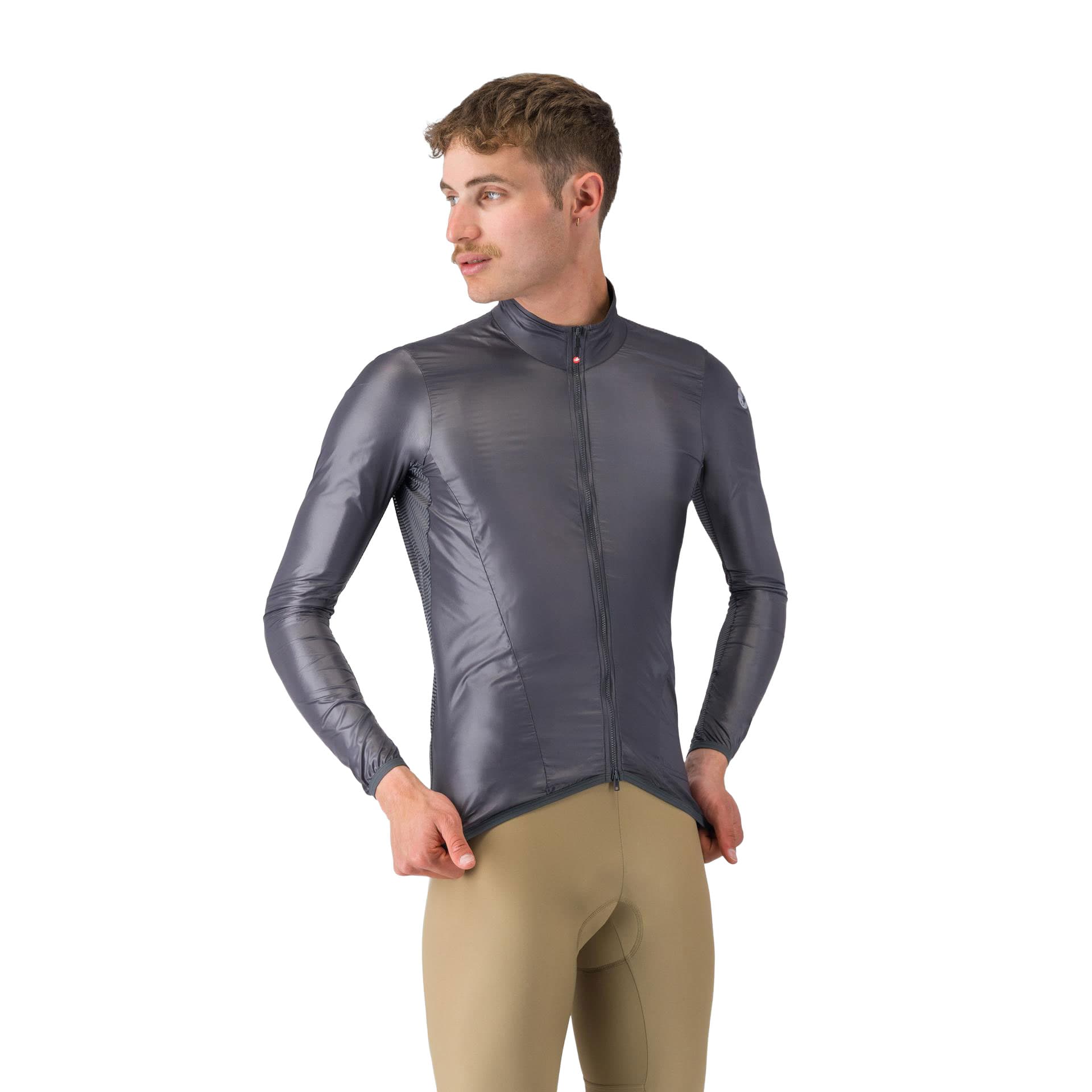 Aktualisierte elastische Einsätze verbessern die Ergonomie sorgen für einen noch besseren Sitz und verhindern ein Flattern im Wind. Der YKK® Vislon®-Zweiwege-Reißverschluss ermöglicht flexible Belüftung während reflektierende Castelli-Logos die Sichtbarkeit erhöhen.