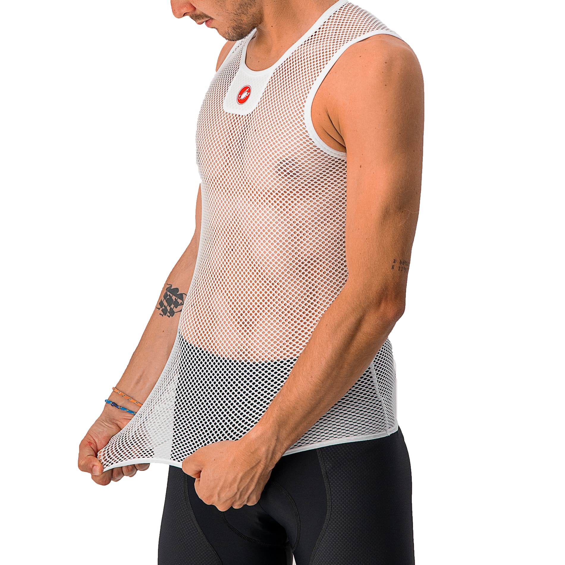 Ultraleichtes Mesh-Baselayer für heiße Tage – maximales Feuchtigkeitsmanagement und kühlender Luftstrom unter dem Trikot. Das Castelli Core Mesh 3 Sleeveless ist dein Baselayer für die heißesten Tage.
