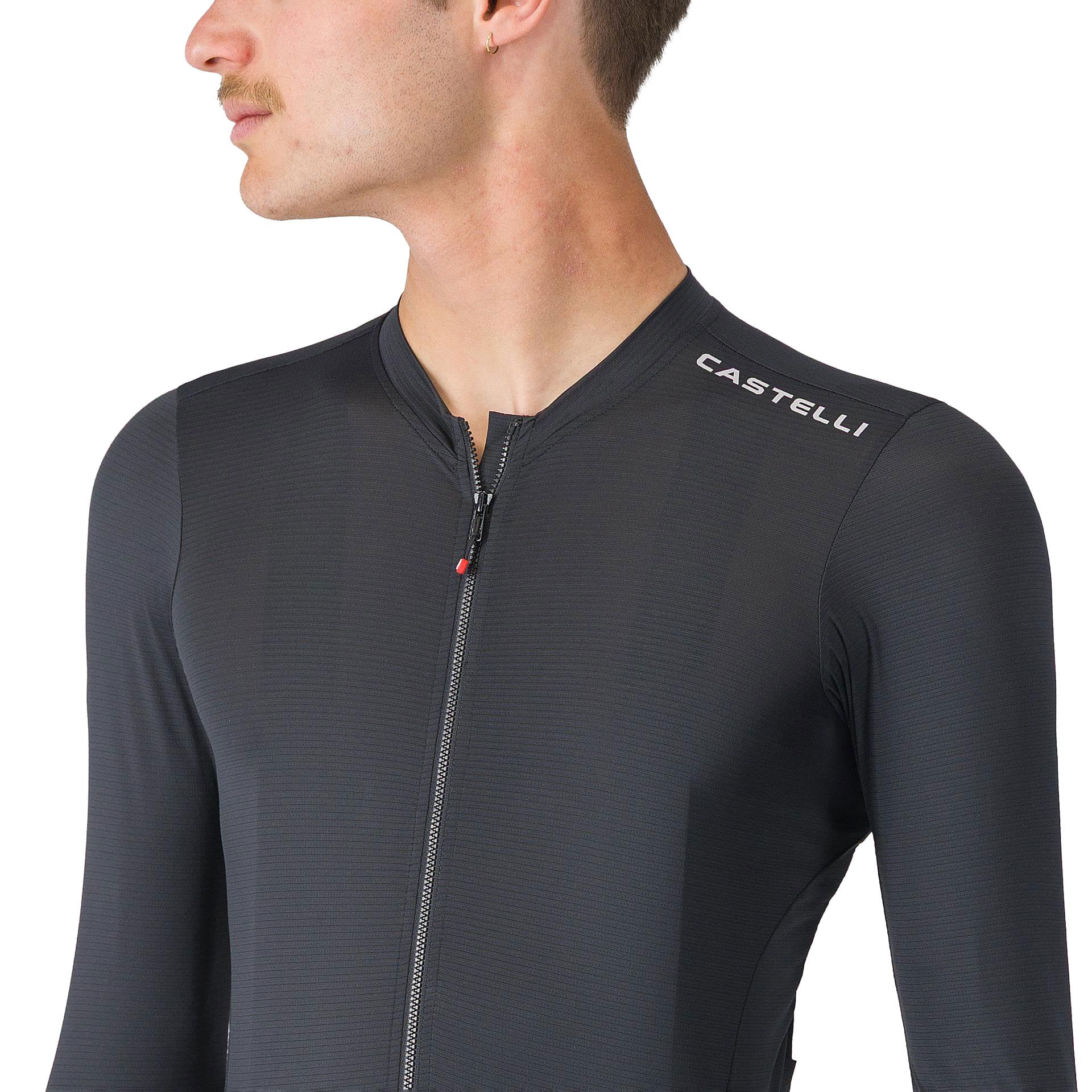 Das von Castelli entwickelte Air_O Stretch-Material sorgt für eine enganliegende Passform ohne einzuengen und bietet hervorragende Atmungsaktivität sowie effektive Feuchtigkeitsregulierung. Gleichzeitig unterstützt das sommerleichte optimierte Gewebe Aerodynamik und Komfort.