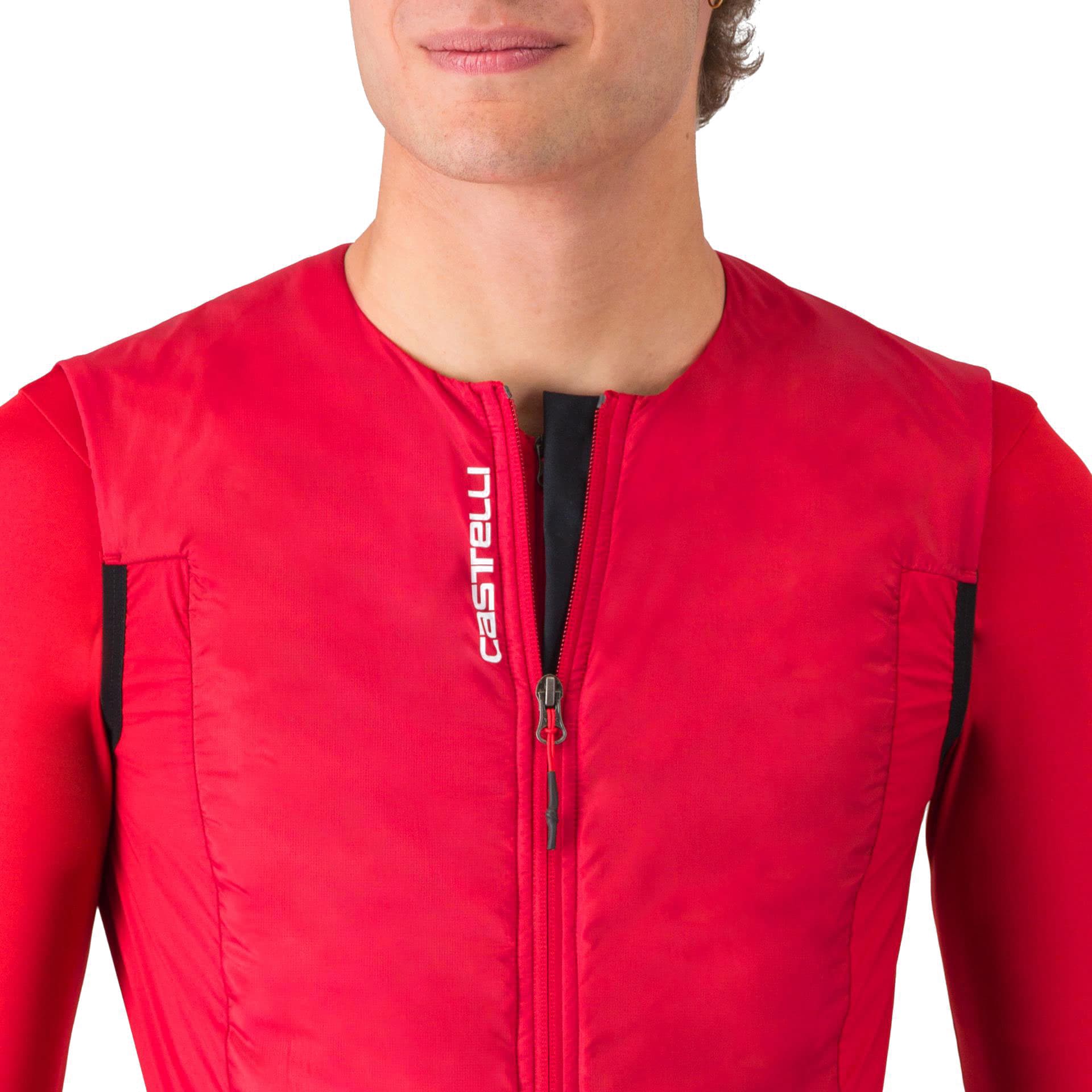 Wenn du sie zum ersten Mal in der Hand hältst könntest du sie vor Leichtigkeit fast in die Luft werfen. Die Castelli FLY Fabric Technologies (FFT) machen diese erstaunliche Weste möglich.