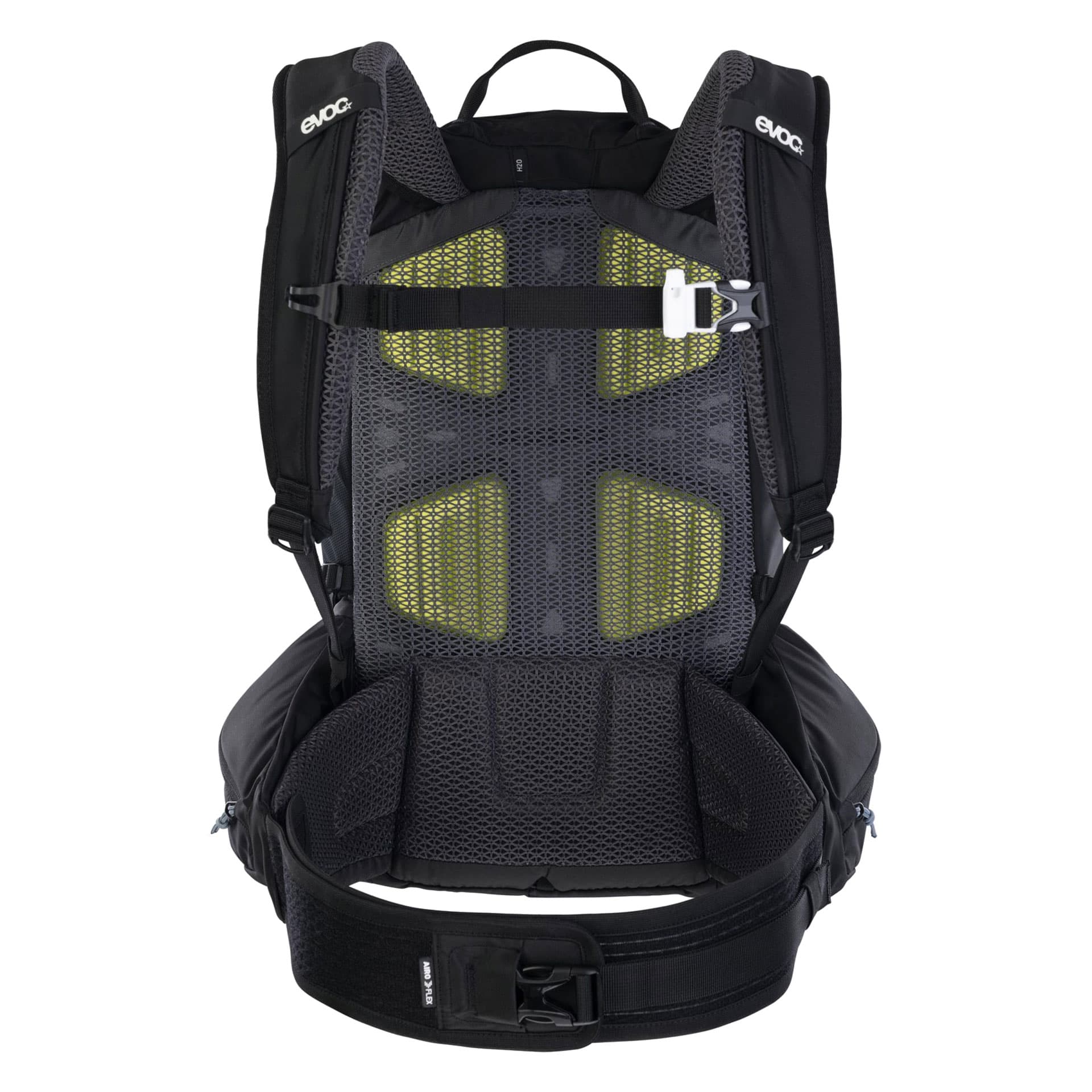 Dadurch bleibt der Rucksack selbst auf anspruchsvollen Trails sicher in Position während Rücken und Schultern entlastet werden.