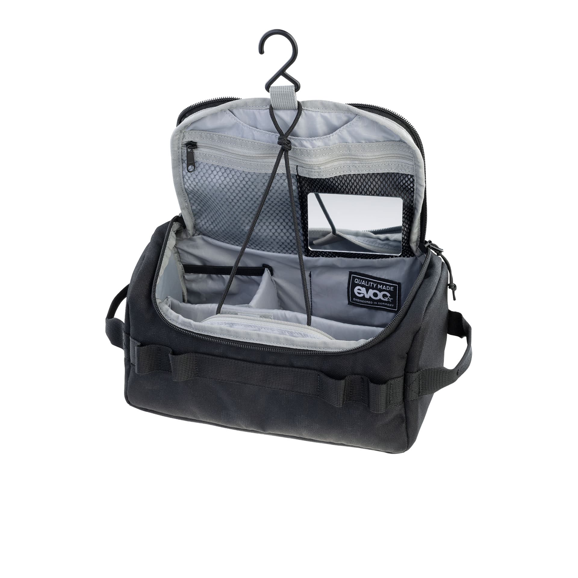 Funktionaler Kulturbeutel mit durchdachter Fächeraufteilung herausnehmbarem Spiegel und Aufhängehaken – ideal für Reisen Wochenendtrips und den täglichen Einsatz unterwegs. Der Evoc Wash Bag ist ein funktionaler Kulturbeutel für Reisen jeder Art.