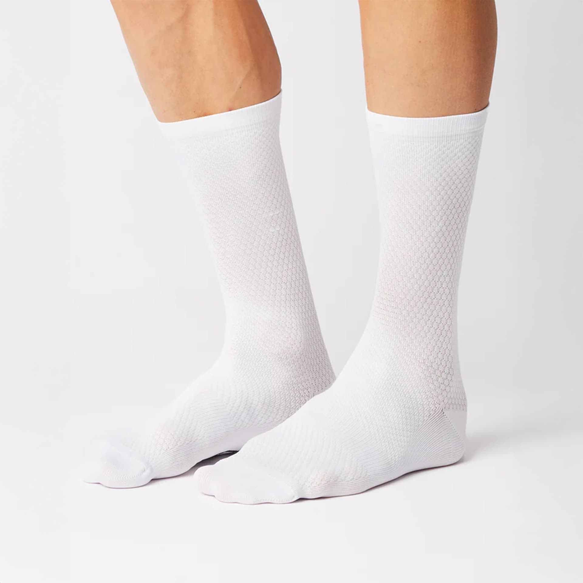 FINGERSCROSSED AERO besteht aus einer Materialmischung aus Nylon und Elasthan. Die Struktur im oberen Bereich der Socke ist auf maximale Aerodynamik ausgelegt. Eine nahtlose Zehenkonstruktion sowie die elastische Passform sorgen für hohen Tragekomfort.