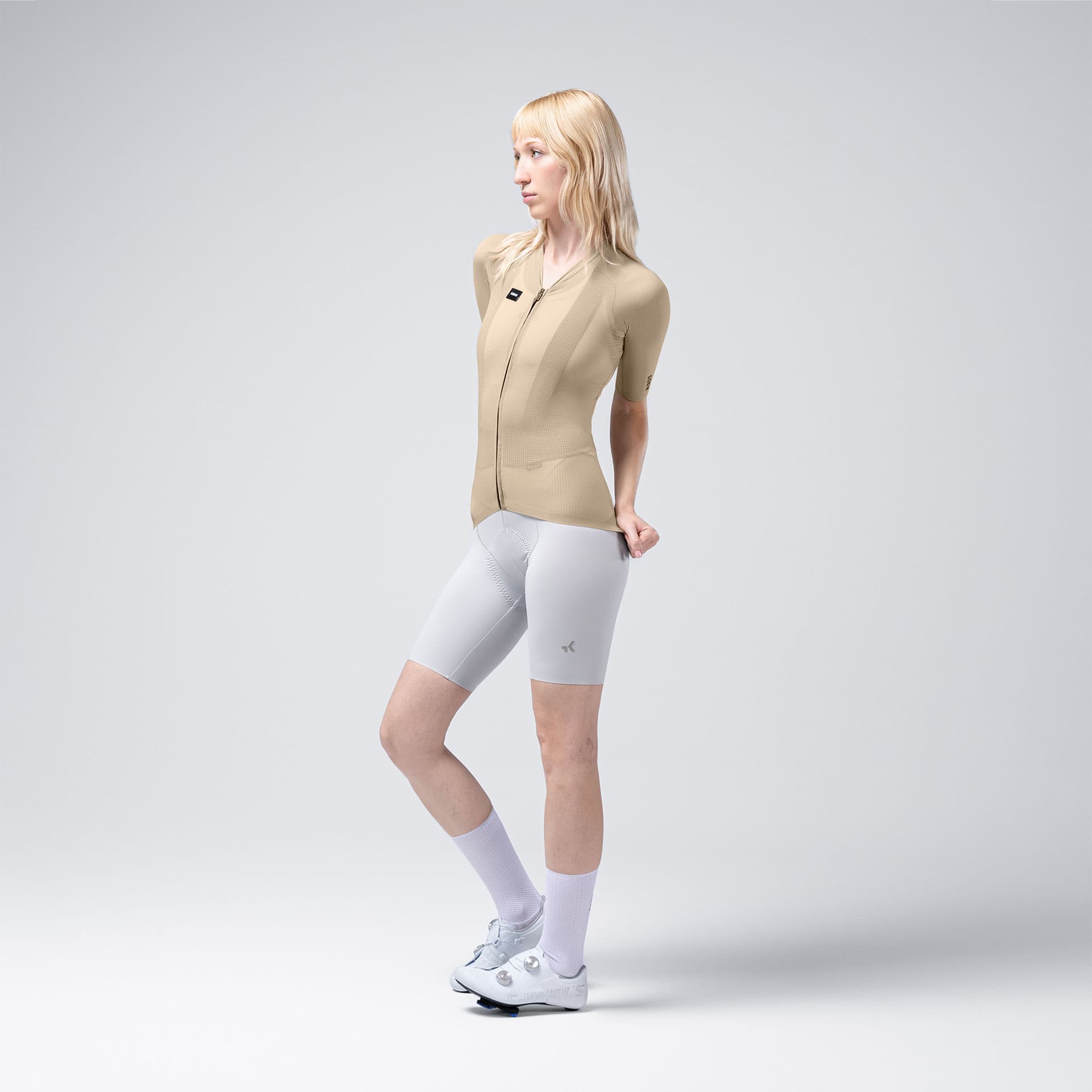 Die körpernahe Passform schmiegt sich wie eine zweite Haut an und bietet eine optimale Balance aus Aerodynamik und Bewegungsfreiheit.