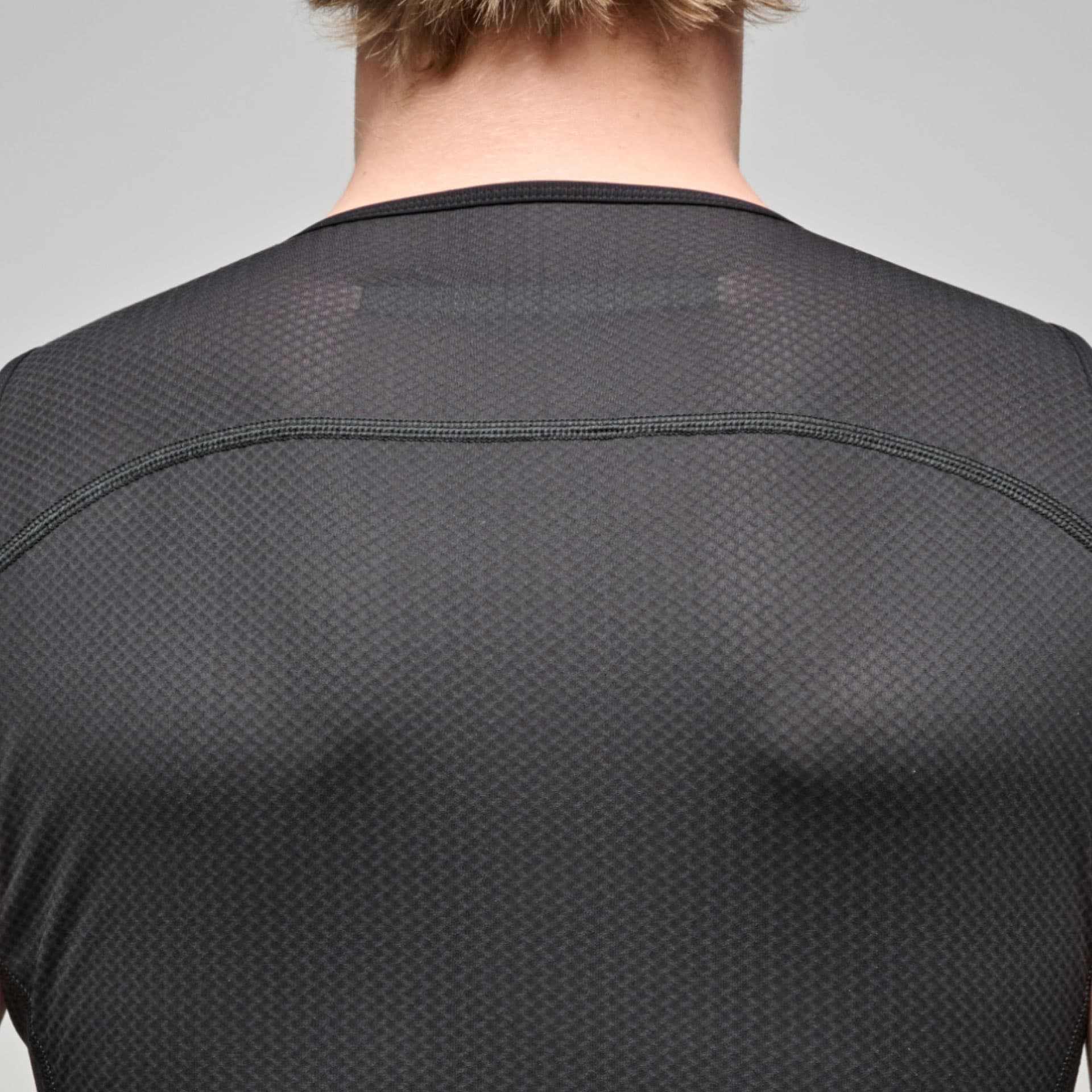 Produkteigenschaften Ultraleichtes Mesh-Gewebe für maximale Atmungsaktivität Hergestellt aus recycelten Garnen und italienischem Funktionsmaterial Feuchtigkeitsableitend und schnelltrocknend Flache Anti-Reibungs-Nähte für hohen Tragekomfort Ergonomischer Kragen für optimale Kombination mit modernen Jerseys