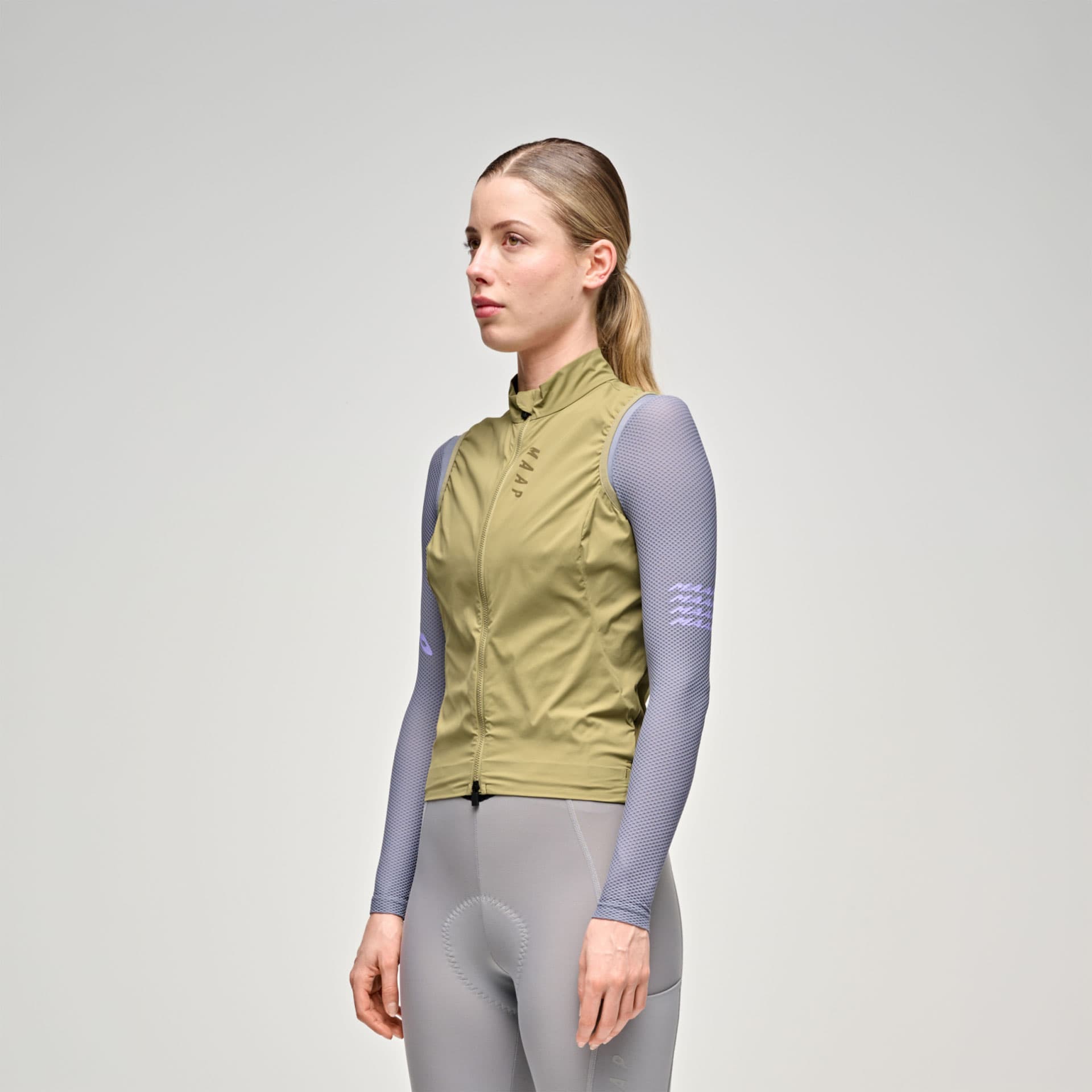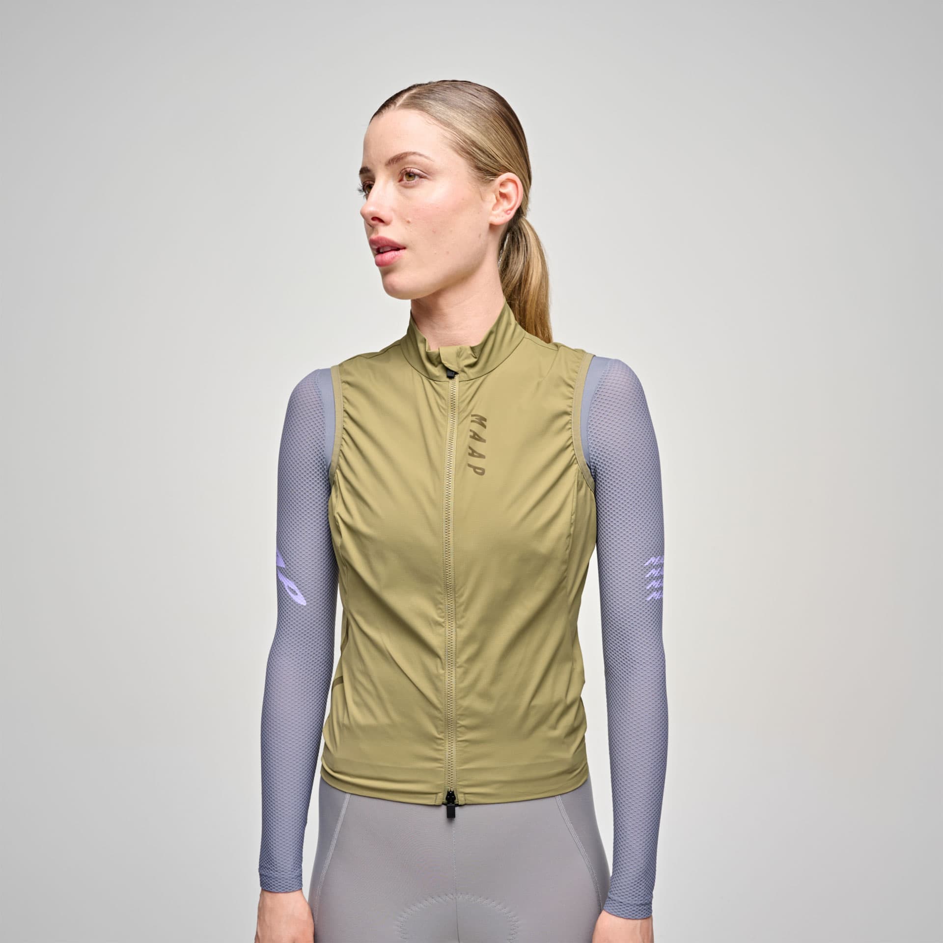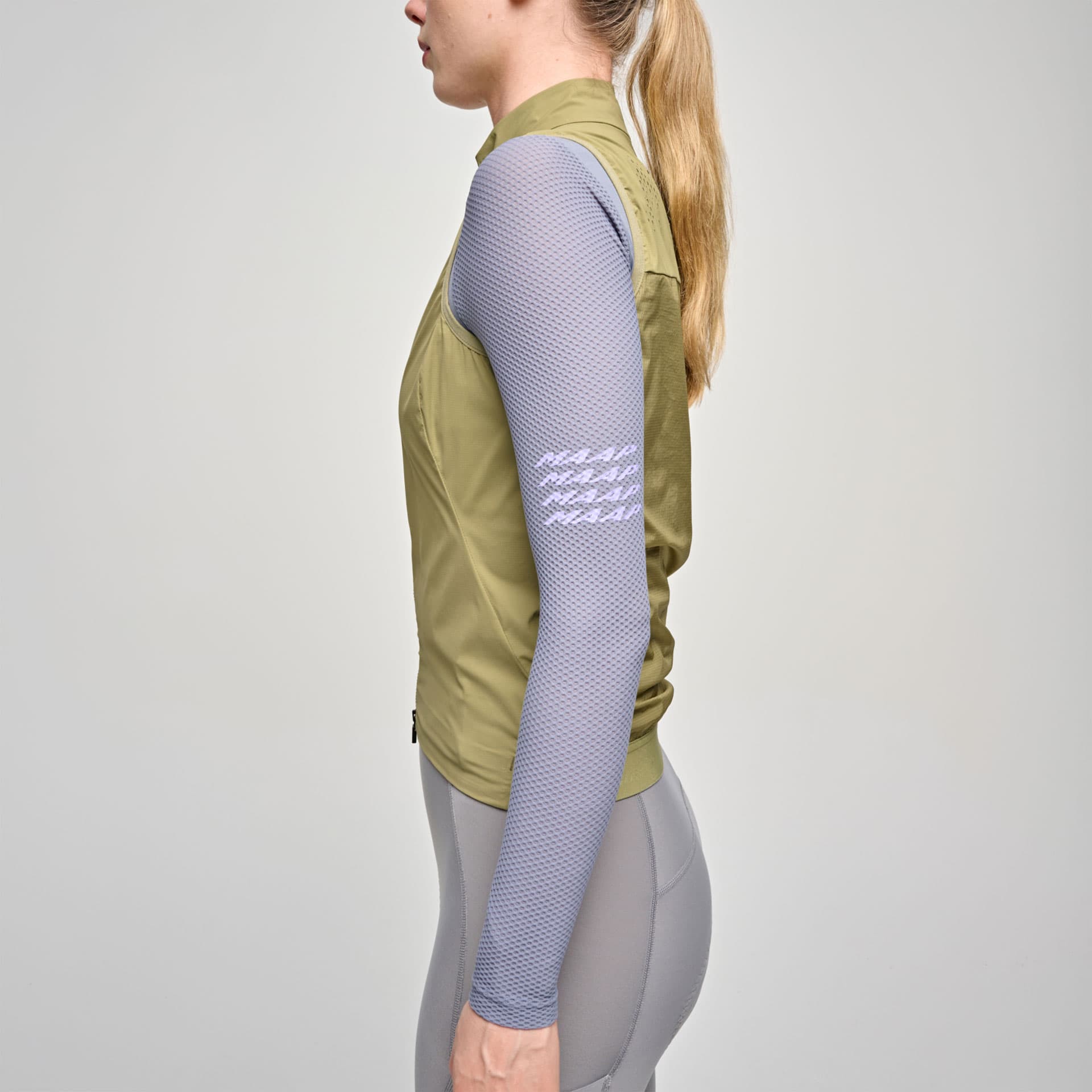 Die MAAP Womens Team Flow Vest bietet zuverlässigen Windschutz bei minimalem Gewicht und lässt sich kompakt in der Trikottasche verstauen.