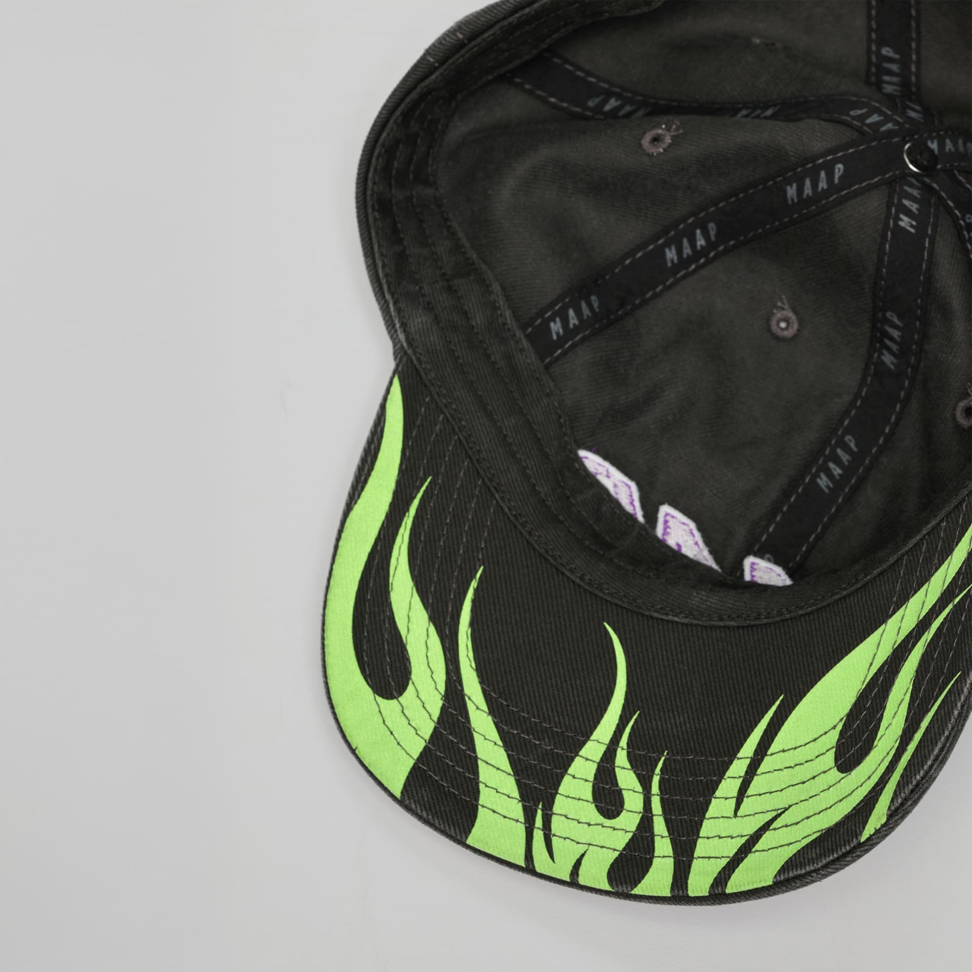 Produkteigenschaften 6-Panel-Konstruktion Gestickte Logos Gewindeösen Internes Schweißband Geschlossene Verstellschlaufe MAAP-Markenhardware Material: 100% Baumwolle