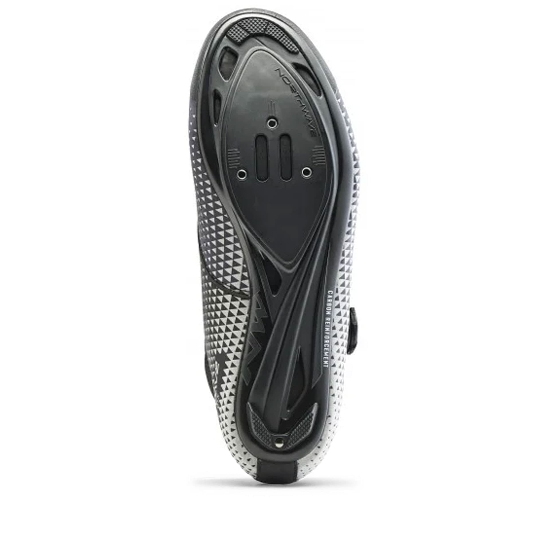 Dank der NRG Air Carbon Sohle mit einem Steifigkeitsindex von 80 wird eine hervorragende Kraftübertragung erreicht. Die Overlap-Construction des Oberschuhs reduziert den Windwiderstand umhüllt den Fuß gleichmäßig und ermöglicht eine präzise Leistungsübertragung.