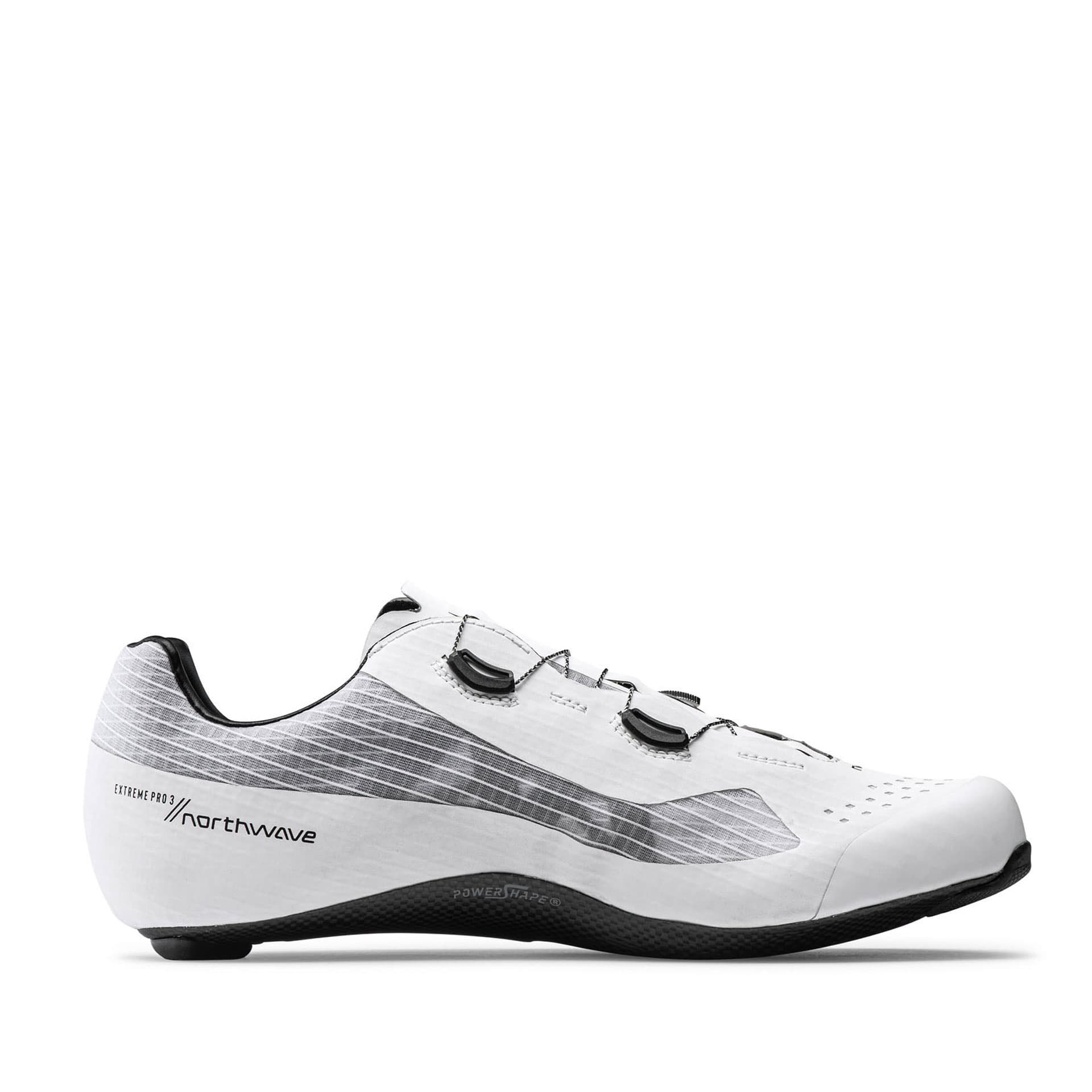 Northwave Extreme Pro 3 Rennradschuhe mit Carbon-15 Sohle 100% Carbonfaser für Stabilität Powershape-System für Kraftübertragung Speedplay/Wahoo-Adapterkompatibilität ARS-Technologie für gleichmäßige Belastungsverteilung SLW3-Drehverschluss für präzise Anpassung und belüftendem Netzeinsatz.