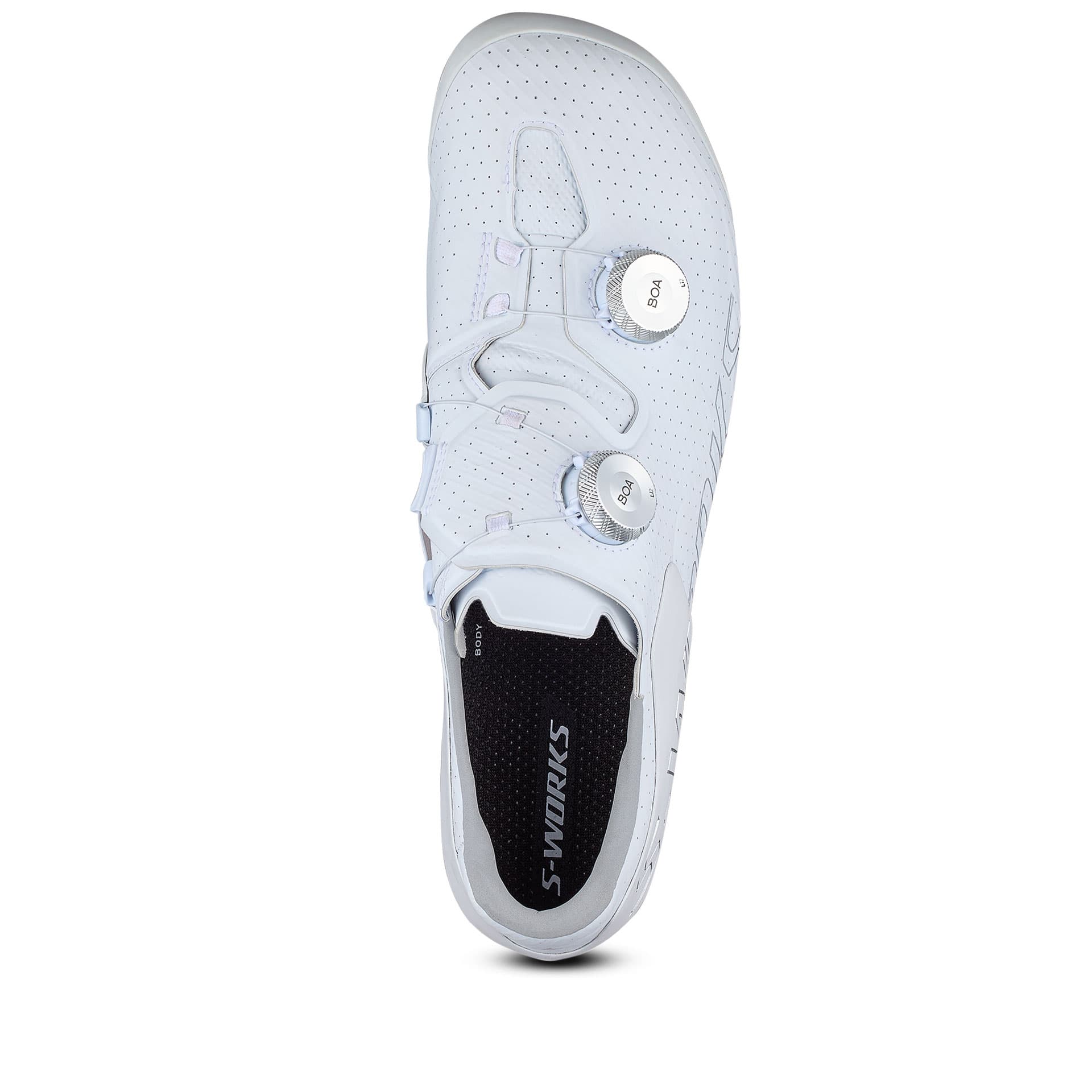 Material der Außensohle: Unidirektionales Carbon Anpassungssystem: BOA® Fit System mit Dual-Dial Li2 Gewicht: 263 g pro Schuh bei Größe 44 Kompatible Einlegesohlen: Body Geometry SL Gen 2-Einlegesohlen