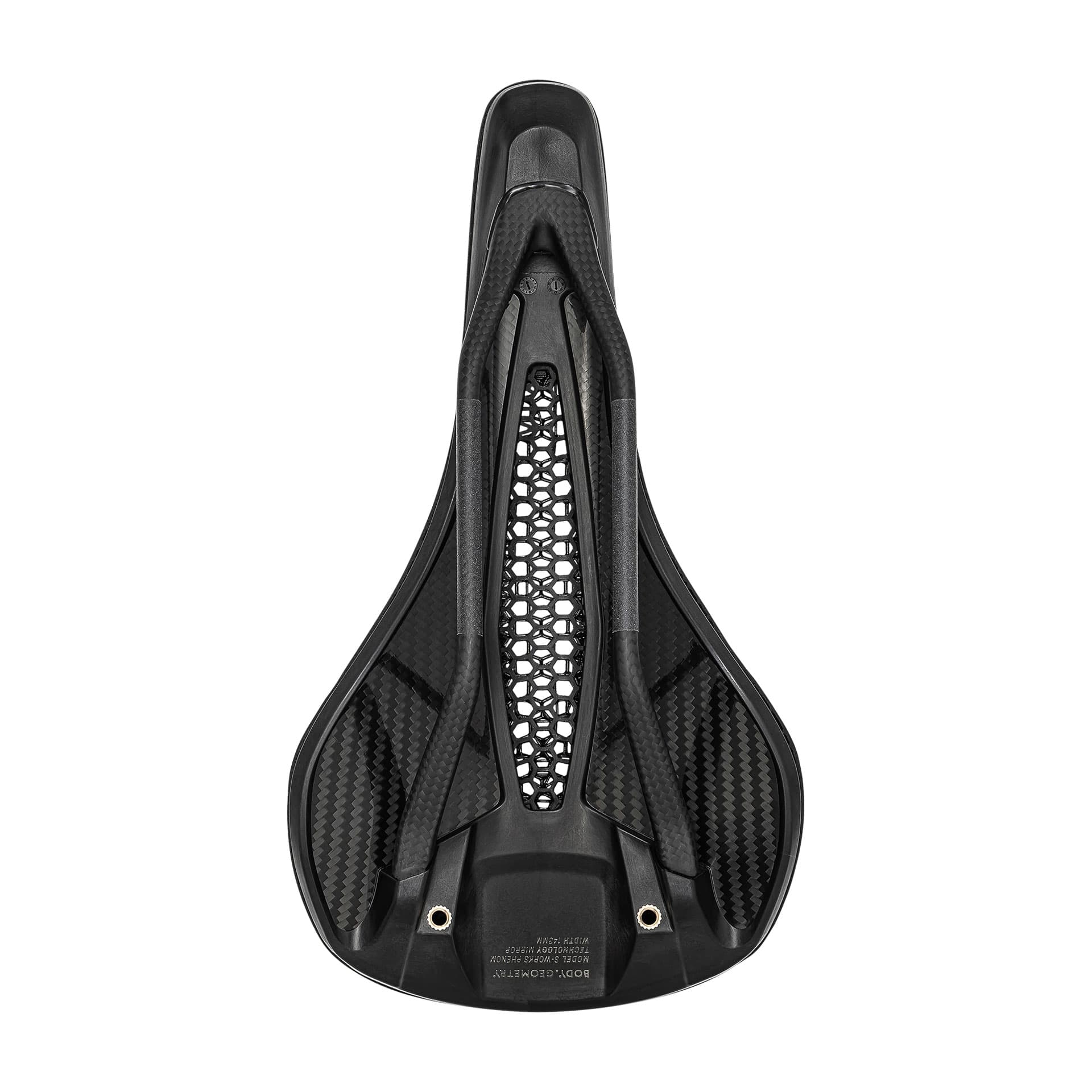 Entlastung des weichen Gewebes Durch die Verwendung einer konkaven Form und einer ultra-nachgiebigen Kohlefaser-Schale hat Specialized einen Raum für einen dickeren Mirror-Druck geschaffen der 20.055 Streben und 8.735 Knoten verwendet - was zu einer 28%igen Reduzierung des Drucks auf die Sitzknochen im Vergleich zu einem traditionellen Schaumstoff-Sattel führt gemessen mit ihrer ultra-hochauflösenden Druckkartierung.