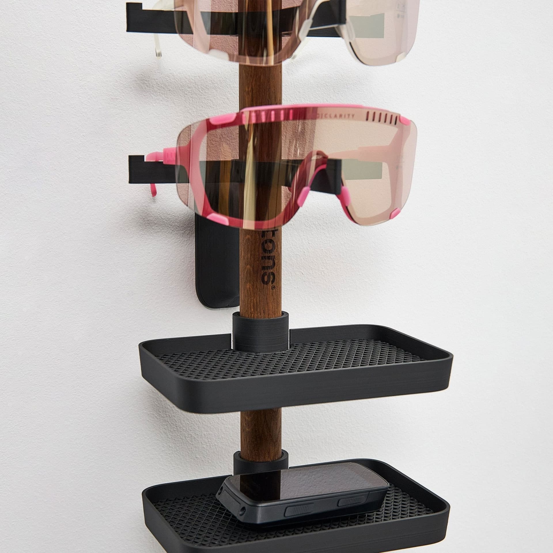 Produkteigenschaften 2x Brillen + 2x Ablagen Fakten und Merkmale Leicht zu montieren. Befestigung wahlweise mit Klebepad oder Schrauben (Dübel Schrauben und Klebepads sind im Lieferumfang enthalten) Stange aus massivem europäischem Eichenholz Entworfen und hergestellt in Dänemark